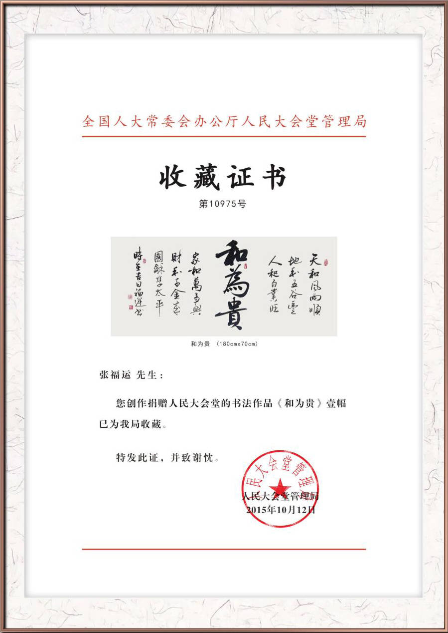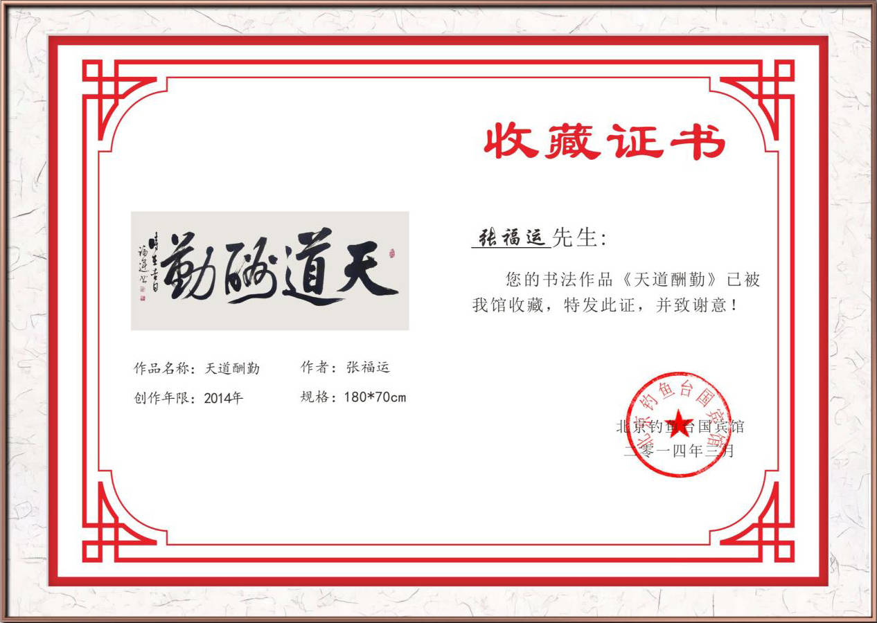 作品《天行健》被国 宾 礼 特 供(外 事 )管 理 中 心 收 藏。