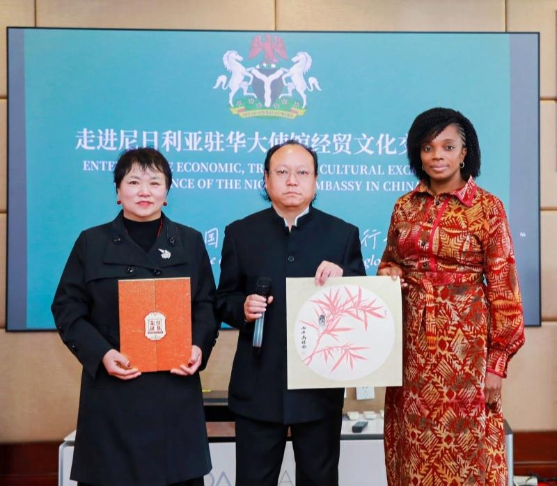 3月27日,“走进尼日利亚驻华大使馆经贸文化交流活动”在尼日利亚驻华大使馆举行。书画家马保金携书画作品走进大使馆,与尼日利亚驻华外交官展开友好交流。活动中,马保金的国画作品被尼日利亚大使馆正式收藏。