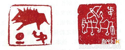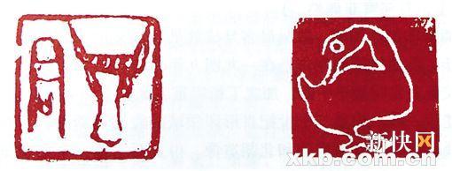 肖形印的镌刻,是玺印工艺与绘画雕刻艺术的结合,杨帆认为“丁衍庸取会甲骨文、金文之高古意趣,在选字上刻意以象形意味更强的先秦文字入印,或以图像配文 字入印,既避开了清代以来‘印从书出’对印人的苛刻要求,也发挥了自己的绘画之长,故其所作印章中,肖形印占据了相当数量,也是其篆刻之最妙者。”