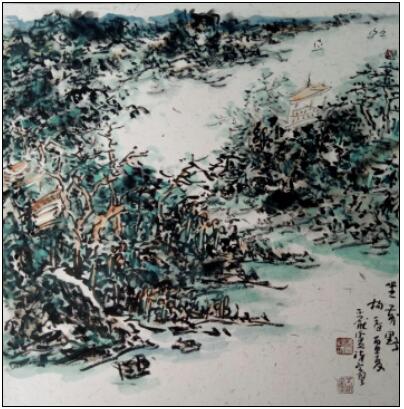 中国传统写意画讲究点、线、面、形、色彩,构成了画面的形式骨架,远近,虚实关系,水墨浓淡关系贯穿在海滨作品里。