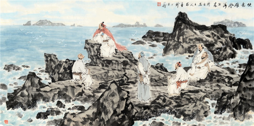苗再新先生崇尚传统,热爱传统,但又不一味地摹古恋旧,他十分清醒地意识到“主题性”绘画的历史价值和未来课题,不局限于“旧”、“新”的概念之下,而是围绕重大题材,紧扣时代脉搏,弘扬主旋律,并将自己置身于实现民族文化的复兴这一大命题中。