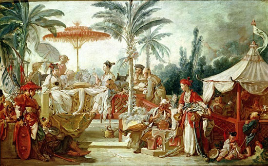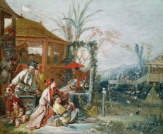 18世纪末西方人眼中的中国。大多是他们想象中的中国和通过来中国旅行的人口中描述所画。有些画作中我们能明显看出西方绘画的精髓,文艺复兴式和洛可可式的浪漫主义风格。