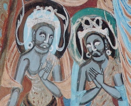 壁画中的石青和石绿色、白色等颜料多为矿物质颜料,稳定性强,历经一千多年还不变色。尤其是北朝时期的壁画中,石绿和石青的纯度很高,石青类颜料中较多地使用了青金石颜料,稳定性很好,因此历经一千多年而不变色。而有些红色和白色却因为含铅等物质,就会变黑。其他的颜料经过混合,特别容易变色,今天我们看到的不少壁画都有较大程度的变色。而不同颜料变色的程度不同,也形成了壁画变色情况的复杂性。从现存情况来看,古代壁画中凡是用色较丰富,层次较多的壁画,变色就比较严重,而用色较单纯,混合色用得少。
