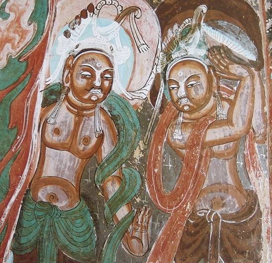 石窟艺术是伴随着佛教的传来而从印度传到中国的。在印度很早就有凿石窟以修行的传统,从现存的石窟遗迹来看,不仅是佛教,包括印度教、耆那教都曾进行过石窟的开窟,这可以说是印度文化的一个传统。因此,在佛教传入中国后,除了在城市中营建寺院外,也仿照印度的习惯在远离城市的地方凿建石窟、雕刻佛像、绘制壁画。在中国也留下了大量古代石窟遗迹,如克孜尔石窟、敦煌石窟、云冈石窟、龙门石窟等等,就是在佛教传统影响下而建成的。印度的大量石窟都是凿建在石质坚硬的山中,在开凿石窟之时就设计了石窟内的佛教雕刻,石窟中以雕刻为主体。中国的云冈石窟、龙门石窟就属于这个类型。但在甘肃和新疆一带,由于山岩大多属沙砾岩,不能雕刻。古代的艺术家们就采取了塑像与壁画相结合的形式。以克孜尔石窟、敦煌石窟为代表的佛教石窟因此而留下了数量可观的壁画,成为中国绘画史上的重要资料。