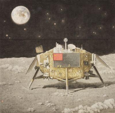 2013年12月15日,嫦娥三号着陆器、巡视器顺利完成互拍成像,标志着我国探月工程二期取得圆满成功。作者通过嫦娥三号无人登月探测器软着陆成功,描绘了世界月球探测史的中国册页。画面色彩上充满想象力,营造了宇宙空间的神秘感,也展示了一种庄重的静谧质感,国旗的红色得以突出呈现。“探月路”托起“中国梦”,画面从一个伟大的瞬间入手,展示了中国探月人的智慧与创造,具有感召人心的力量。
