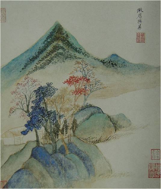 他早期的画大多仿宋人画,宋人画力求写实,讲究的是真实的造境。画的都是真山真水,力求一个“真”字。董其昌在这一时期最典型的代表作就是《燕吴八景图册》。