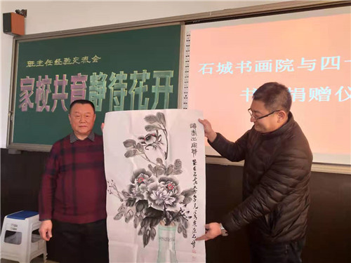 石城书画院院长郭学忠表示,今后将更加关注学校的发展,开展书画进校园活动。四十六中校长刘向东表示,捐赠见真情,感恩无止境,再次感谢石城书画院的艺术家们心系教育,我们四十六中一定不负众望,用心培育出更多优秀的人才,以回报石城书画院的关心和支持。此次收到的书画作品将装裱起来在校园内展示,并长久保存作为文化的传承教育流传下去。