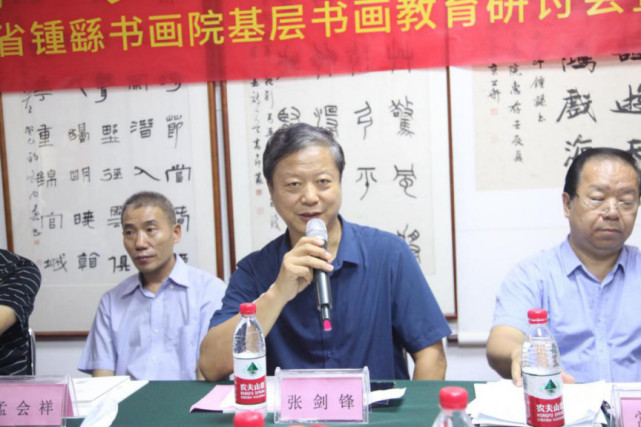 会议开始,河南省锺繇书画院院长锺天钊及中原书画文化联盟副主席班朝阳致欢迎辞,随后,河南省锺繇书画院艺术顾问、河南省文联原副主席张剑锋主席发表讲话,他指出,对中小学生进行汉字书写基本技能的培养,不仅是提高学生汉字书写能力、培养艺术审美情趣、促进全面发展的重要举措,更是传承中华优秀传统文化、永葆中华文明薪火相传、确保中华文化安全的重要途径。河南省锺繇书画院艺术顾问、河南省美协理论委员会主任、郑州市美协副主席常平安主讲《关于书画教育的几个重点论述》,他强调,书画教育要唤起学生内心成长的需要,基层教育老师要以培养学生价值取向为根本,在传授专业知识的同时更要注重学生价值观念的培养。河南省锺繇书画院副院长、书法导报副总编孟会祥从“养成教育”、“书法兴趣对学生文化课的影响”等话题展开探讨,诙谐幽默的讲话风格引来与会人员的频频掌声与阵阵欢笑。
