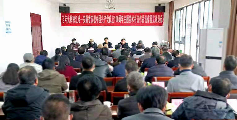 一年之计在于春,百年光辉映江淮。为安徽省庆祝中国共产党成立100周年主题美术书法作品展览动员会在宣城市旌德县白地镇宣砚小镇召开。 安徽省书画院院长刘廷龙介绍了此次会议的时代背景和重要意义,力求弘扬红色传统,传承红色基因,描绘党的光辉历程,歌颂伟大发展成就。 书画作品展由安徽省文化和旅游厅主办,安徽省书画院创作展览联盟和安徽省书画院承办。创作内容围绕“百年光辉映江淮”主题,围绕党的百年风雨、百年奋斗、百年辉煌和奋进新时代的伟大实践,以红色历程、伟大成就、人物风采、时代新貌等为主要内容,展现美化安徽建设的火热实践和人民群众的精神面貌。 省书画院联盟单位、皖北书画院院长闫蒙介绍:围绕中心、服务大局,培根铸魂、守正创新,团结带领一线优秀的青年美术教师,创作更多的精品力作服务美术教育事业,推动皖北书画文艺高质量发展,以优异的成绩向中国共产党成立100周年献礼。
