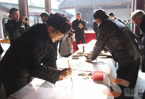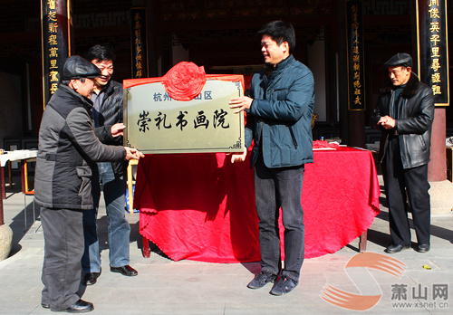 萧山网12月16日讯 今天上午,河上镇崇礼书画院授牌仪式暨与萧山区农民书画协会书画交流联谊活动在联发村魏塔祠堂内温暖开启,萧山区农民书画协会主要领导、各辅导站负责人、各有关书画名人、镇村领导以及热心资助书画院的相关爱心人士参加了此次授牌仪式。