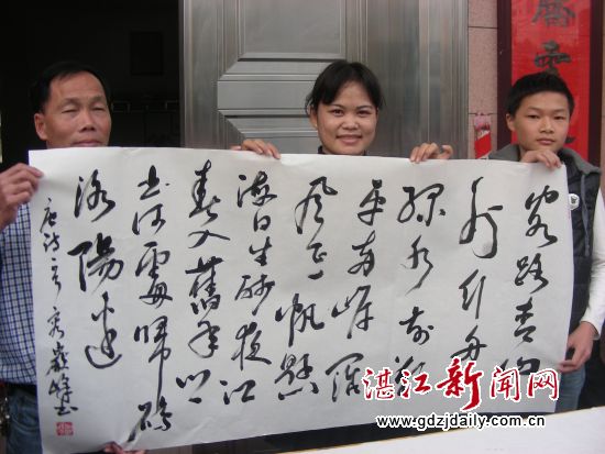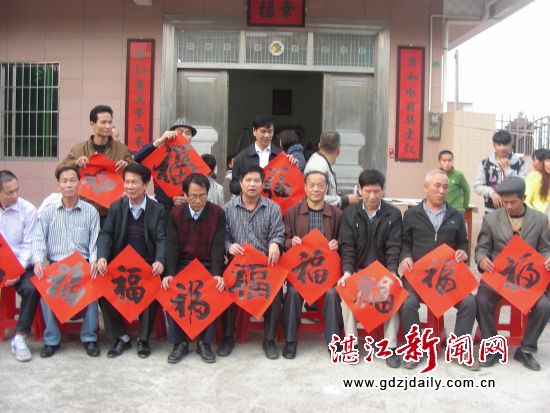 岭南春书画院自2007年成立以来,长年坚持到基层、到农村开展创作活动,免费为群众送春联、送书画作品,受到各地群众欢迎和好评。3月4日,是高屋村一年一度的传统民俗节日——“年例”。高屋村位于塘尾街道东南面,人口近千,已建成环村硬底化水泥公路和灯光篮球场、文化室等文化体育设施,普遍实现改水、改厕、净化、绿化、美化,村民崇尚科学,崇尚文化,移风易俗,遵纪守法,讲礼貌,乡风文明,民风纯朴,是我市和湛江市生态文明村。为给高屋村的传统民俗节日增添文化艺术元素,使高屋村村民近距离品味到高雅的文化大餐,岭南春书画院应邀组织十几名书法家到该村举行即席创作活动,受到该村群众欢迎。