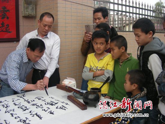 湛江新闻网讯:3月4日,吴川市岭南春书画院组织书法家到该市塘尾街道高屋村即席挥毫,现场创作近百幅书法佳作,全部免费赠送给高屋村村民。