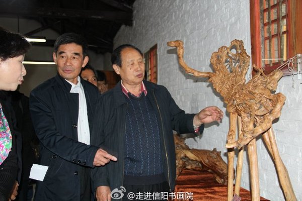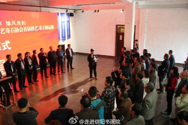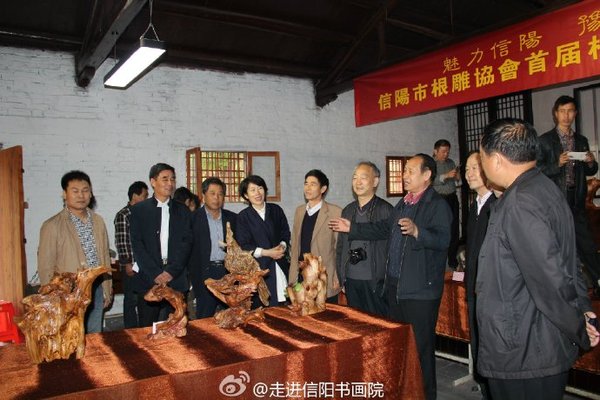 信阳那点事儿 网讯:4月24日由信阳市委宣传部、市文广新局、市文联、市文化产业协会、主办单位:根雕奇石协会、承办单位:信阳书画院支持单位:信阳广播电视视台举办的大型根雕奇石协会展,在信阳书画院盛大开幕,开幕式上市委宣传各领导做出重要讲话:我们要进一步弘扬中国根雕艺术,推动中国根雕艺术在创作实践和理论研究上取得新的突破;努力拓宽根雕艺术展示平台,吸引更多外围的目光来关注与研究根雕艺术;顺应文化产业发展潮流,研究探索进一步推动根雕产业发展的有效途径。