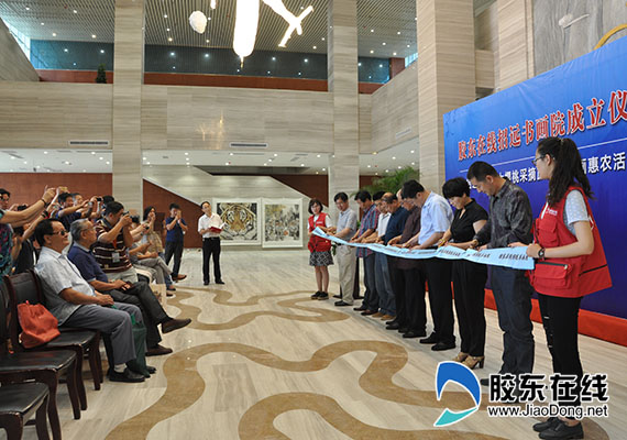 成立仪式上,还宣读了胶东在线招远书画院章程、成员名单并颁发聘书;胶东在线烟台书画院院长丁坐京向烟台双塔食品股份有限公司授予“胶东在线书画院创作交流基地”铜牌。