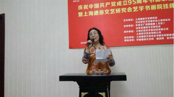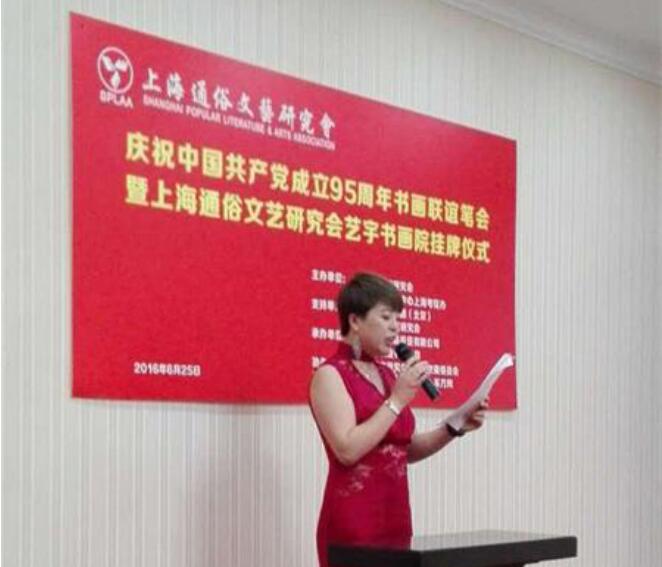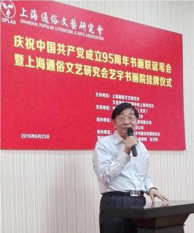 由上海通俗文艺研究会、文化部艺术发展中心上海考核办联合主办,中宣文广传媒集团(北京)和山东省通俗文艺研究会支持,上海古恒艺术品投资有限公司、上海铮沈实业有限公司承办的庆祝中国共产党成立95周年书画联谊笔会暨上海通俗文艺研究会艺宇书画院挂牌仪式,于2016年8月25日下午在古恒艺术品投资有限公司隆重举行。