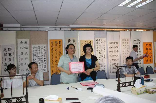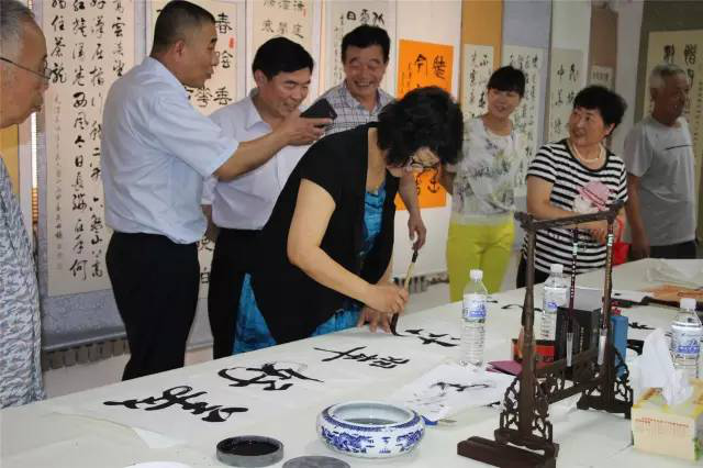 翠湖社区百姓书画院特别聘请了我市著名书法家郭立先生担任名誉院长,而院长、副院长则由社区百姓中的“草根”书画艺术家担任。仪式上,书画艺术爱好者们纷纷现场挥毫泼墨,以自己的力作祝贺“七一”党的生日及社区百姓书画院的成立。活动现场展出了百余幅书画,其中长11米的长卷书法被大家赞不绝口。