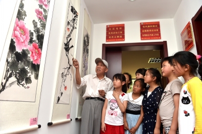 曲江街道顾庄社区刚刚成立的公益社会组织——社区书画院,定期开展书画创作公益课堂,所有教学活动全部免费,确保辖区内的中小学生度过一个丰富多彩、书香十足的暑假。 据悉,该社区书画院是扬州市首个在民政部门备案注册的社区公益社会组织。既是基层宣传思想文化工作的一个重要载体,又是基层党组织践行“两学一做”、推进文化惠民的一次实际行动;为基层书画爱好者搭建起一个学习交流的平台,丰富基层的精神文化生活,推动文艺活动的蓬勃开展,让草根文化更好地“快乐自己、服务群众”。 图为一位老书画艺人在给暑假里的孩子们讲解国画创作技艺。 庄文斌 周媛 摄