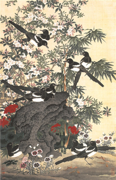 陈佩秋国画《春花喜鹊》