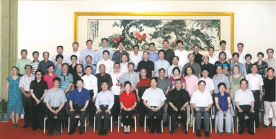 中国书协主席苏士澍(左六)来院调研