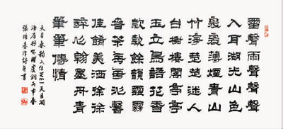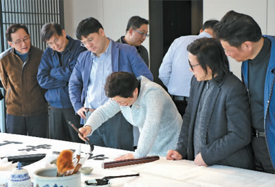 上海市政协书画院的书画家们到溧阳后,既不去公园赏景,也不去风景名胜游览,而是静静地环视酒店周围的青山、竹海,听风声雨声春雷声,论书道,作诗词,开笔会。书画家戴小京、马双喜、沈杰、洪健、徐立铨、张国恩、张洁明、张培基、唐桂鹤等纷纷挥毫泼墨,创作出一幅幅艺术作品,有的还用自作诗赞美溧阳的山水风光。