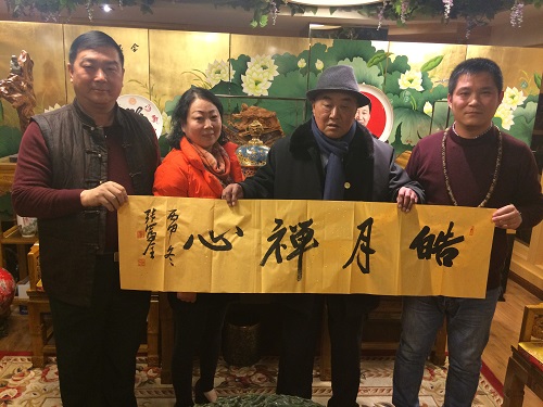 北京大学战略研究所顾问张伟星先生(左1)收藏书法家张富全先生作品“皓月禅心”
