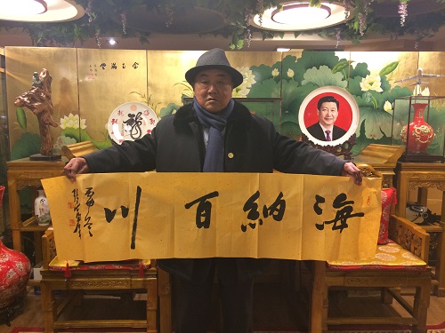 国家荒漠化基金会顾问李广华先生收藏书法家张富全作品“海纳百川”