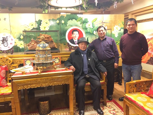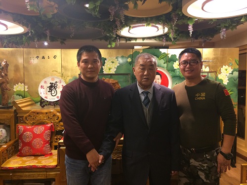 藏品艺术网执行主编王骊丁(左)与国家荒漠化基金会顾问李广华先生(中)少林寺第三十四代弟子、入疆平暴英模释延勇先生(右)在一起