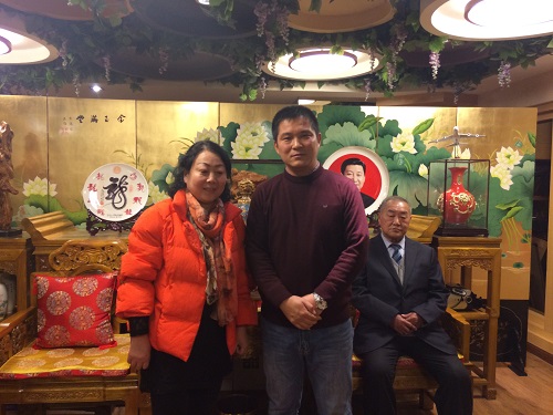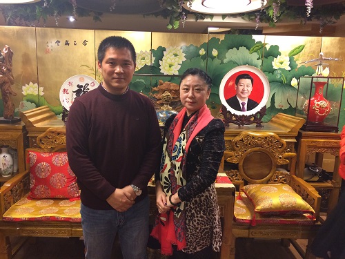 藏品艺术网执行主编王骊丁与国家荒漠化基金会顾问李广华先生秘书唐莲菂女士(左)留影
