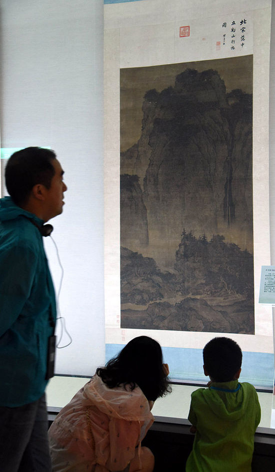 观众“典范与流传——范宽及其传派”展上欣赏《溪山行旅图》