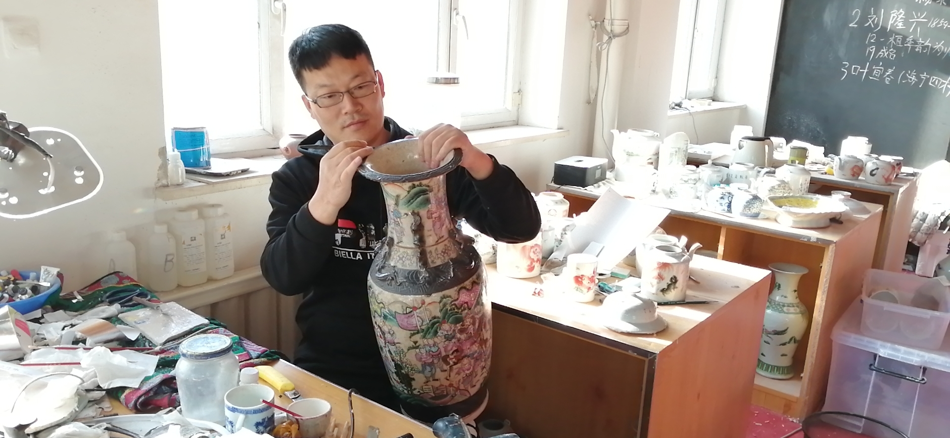 伏成利今年36岁,是盖州市人大代表、中国民主同盟盟员。年纪轻轻的他有着有超出同龄人的成熟和稳重,兴趣和爱好更是与众不同,从事的职业亦是很冷门的行当——瓷器修复。