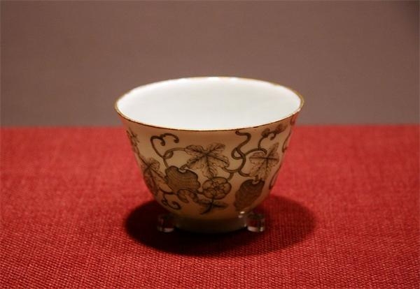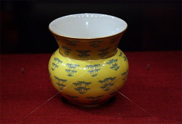 画样的中间是用墨线勾勒的器物侧视图,器物下部是装饰器物的图案纹样,这些纹样都是以展开图的方式描绘出来的;器物造型是立体的,而图案是平面的,形成了一种特殊的视觉效果。在图样的左上方和右上方贴有红签和黄签,红签标明编号,黄签则是对于要烧制器物的颜色、种类、数量的具体要求。如意馆画士完成画样后,需要经过老佛爷的认可,如果不满意还需要重新绘制,确定以后发往御窑厂按图烧制。而在御窑厂烧造完成后,这些画样还要原样交回宫廷,绝不能流到宫外。