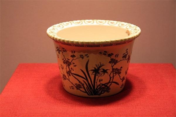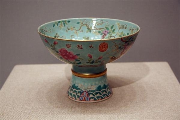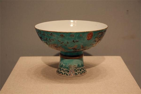 慈禧好像尤其钟爱墨彩,在这些瓷器中,用各种色地衬托墨彩绘画的器物非常多,见有绿地墨彩、黄地墨彩、白地墨彩、蓝地墨彩等,就是在儿子大婚典礼和自己的生日庆典中照样使用墨彩器物,可见其喜爱程度了。墨彩器物烧造数量大大超过了以往,由此也可以看出墨彩风格器物受慈禧喜爱之深和宫廷中使用之多了。