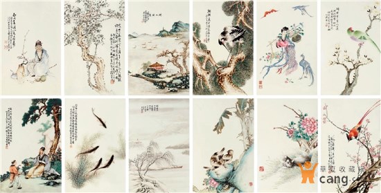 “珠山八友”名家绘粉彩山水人物花鸟瓷板 28×38cm×12 北京匡时2016十周年春季拍卖会850万成交