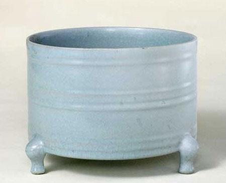 北宋汝窑弦纹樽:身价数亿 堪称“汝瓷之王”,弦纹三足樽全球仅存一件,为北京故宫博物院镇院之宝,是传世汝瓷中极为罕见的大件器,无价之宝。樽高12.9厘米,口径18厘米,足径 17.8厘米。樽直口、圆筒腹、平底,由三个变形兽足支撑。胎质细腻,呈香灰色,胎体较轻。