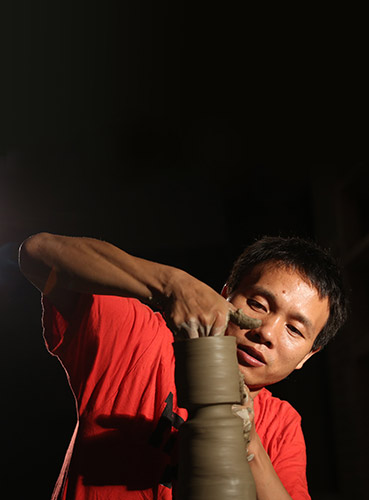 借用微信上的流行语:在薄情的世界里深情的活着,或许这是对青年陶艺家袁乐辉当下状态的最好表达。这位来自江西省余干县乡下一个渔村的孩子,自1998年考进景德镇陶瓷学院,本科生、研究生、留校任教直至副教授,就再也没有离开过校园、离开过景德镇。