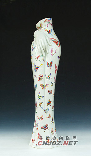 这组作品的诞生无疑与他少年时看黄色录像的那段经历有关,内心深处一直有一种耻辱感,在他的概念里,女人、性都是肮脏的事情,都是持批评的态度去看待它,点确有些令人不解。其后创作的《镜子系列》,尽管增强了画面叙述性,使之变得含蓄而更有意境,但其表达的方式一直改变,我个人的理解认为,袁乐辉如果不是概念先行,总是抱着着一种批评、救世的态度去创作,利用瓷器的特殊材质,尽情展示人体之美、情爱之美、情色之美,或许会更有收获。