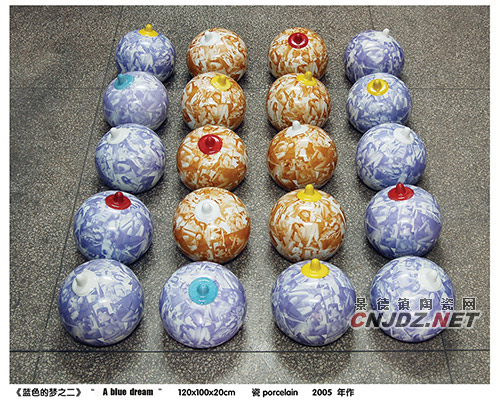 袁乐辉的第一件获奖作品《蓝色的梦》,以女性饱满圆润的乳房为造型,并选取无数张裸露色情的女性照片,采用拼贴形式丝网印制在其造型上面,其想表达的主题定为“欲望、弥漫、忧伤”,此件作品于2007年入选韩国第四届国际陶艺双年展,增加他对有关情色类陶艺创作的自信与延续。