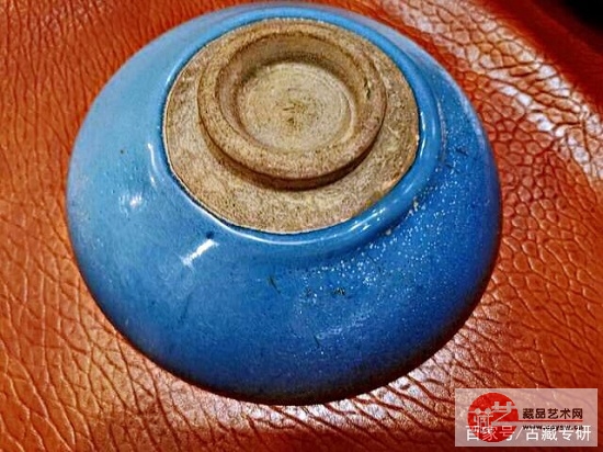 另外器型显得下坠,器底是铁红色护胎釉,且民窑钧瓷一般施釉不及底,底足露胎较多。