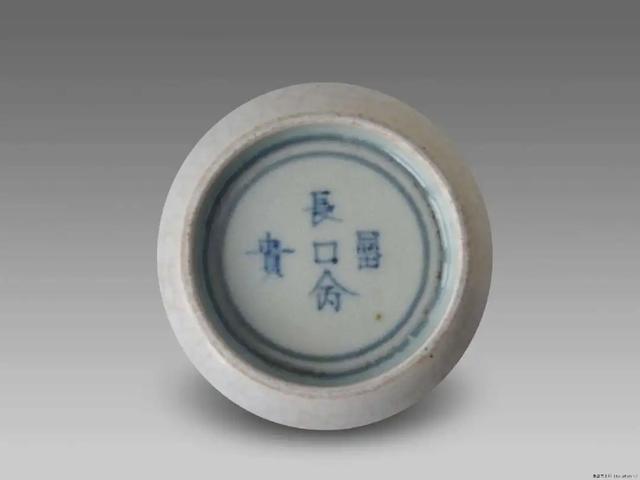 书写含有吉祥寓意的词句,民间青花瓷比较普遍。字体多为行草,潇洒飘逸,一气呵成。“富贵长春,福寿康宁、长命富贵、万福攸同”等语句表达人们对幸福生活的向往。这种落款形式,明代嘉靖、隆庆、万历三朝较为多见。