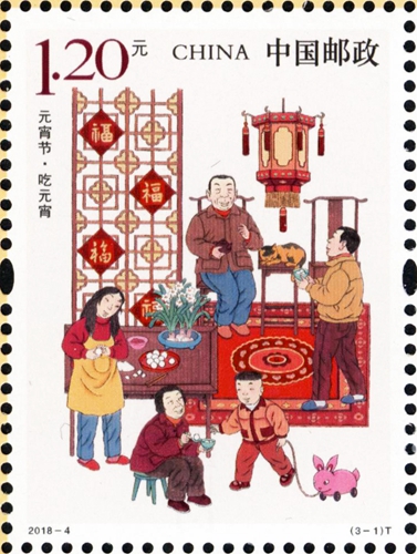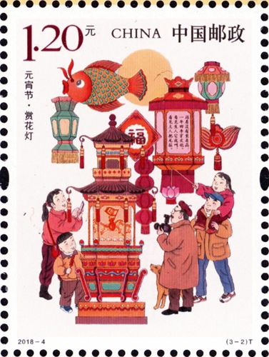 中国邮政定于2018年3月2日发行《元宵节》特种邮票1套3枚。全套邮票面值为3.90元。