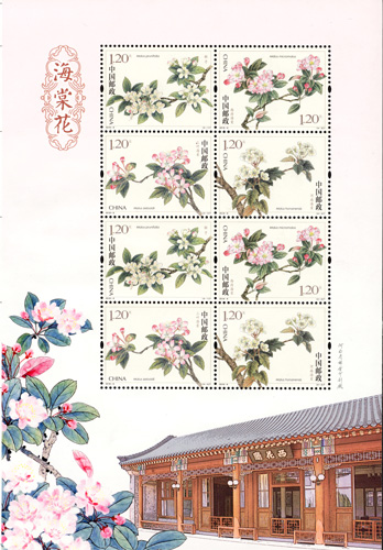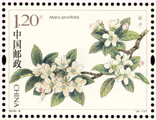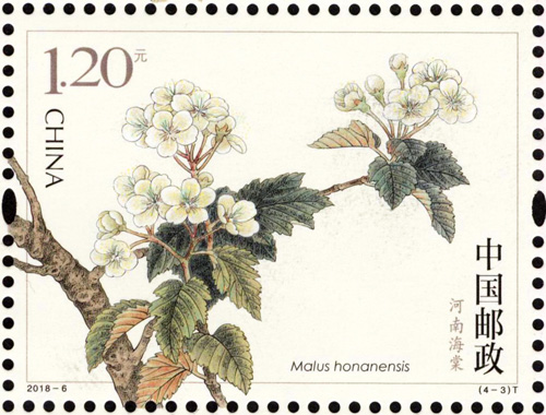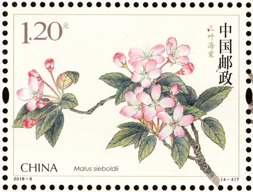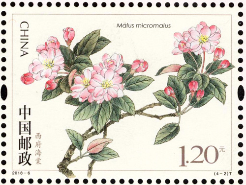 中国邮政定于2018年3月25日发行《海棠花》特种邮票一套4枚。全套邮票面值为4.80元。