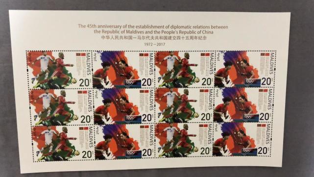 丁宁、刘诗雯登纪念邮票 腾讯体育3月15日北京(文/王怡薇)3月14日,为纪念中国与马尔代夫建交45周年,马尔代夫驻华大使默罕默德·费萨尔访问了中国乒乓球队,除了与队员们打球互动,大使现身还带来了印有丁宁、刘诗雯形象的纪念邮票和首日封。 中国和马尔代夫建交45周年,两国在体育方面的交流频繁,马尔代夫历史上第一支出访国外的运动队就是中国乒乓球队,1973年曾来到过中国,和中国乒乓球渊源很深。两国建交45周年,特意将将丁宁和刘诗雯的运动形象设计在纪念邮票和首日封上。 首日封 大使先生表示,尽管乒乓球项目并不是马尔代夫普及度最高的项目,但很多马尔代夫人都知道中国乒乓球队,尤其是丁宁和刘诗雯,她们是世界冠军,这也是中、马建交45周年纪念邮票设计方案出现两人形象最重要的原因,更希望将体育作为连接两国人民友谊的桥梁。 作为国乒女队队长,丁宁与大使先生在现场切磋球技。“能够登上中、马建交45周年纪念邮票的设计方案感到很高兴,也很荣幸马尔代夫人民知道我、喜欢我。作为乒乓人,有责任将中国乒乓球的文化、影响力传播出去,今后还会做更多此类尝试和努力。”丁宁在接受采访时这样说道。