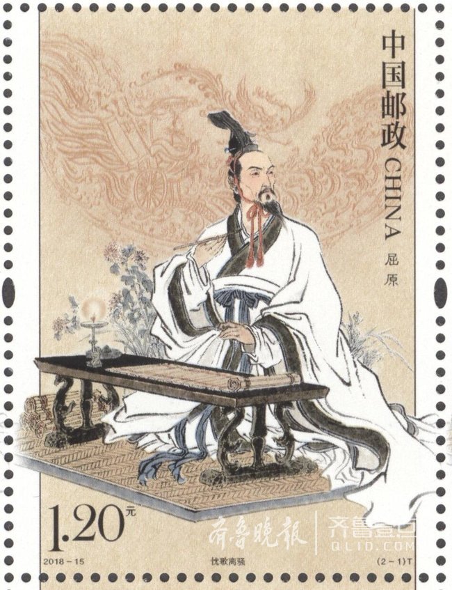 记者获悉,中国邮政定于2018年6月18日发行《屈原》特种邮票1套2枚、小型张1枚,邮票图案名称分别为:忧歌离骚、求索问天,小型张图案名称为:屈原像,全套邮票面值8.40元。