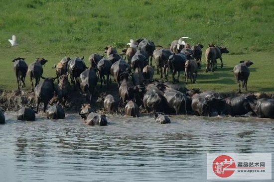 ▲龚志勇拍摄的“百牛渡江”照。