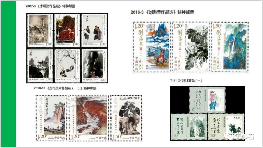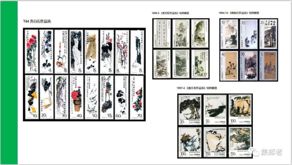集邮者注:一般这类邮票的设计集邮者都会比较期待,虽然近二年的作品选行情不好,但设计都还是不错的。如《刘海粟作品选》集邮者的评价还是比较高的,只是发行量过大,而造成的打折。只是放出T44《齐白石作品选》后,没有对比就没有伤害...