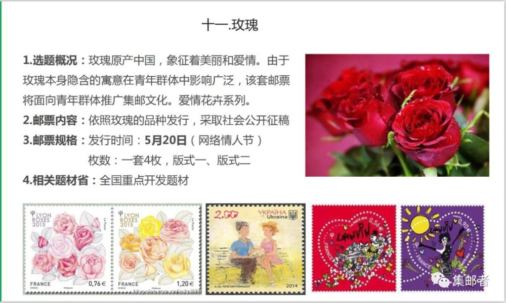 集邮者注:这套邮票与小集的之前预测一样《爱情花系列开山》,在爱情鸟题材广受好评下,这套是爱情花系列邮票的开山系列,并且邮总竟然"全国征稿"啦,也算重大突破了,对于新邮设计饱受鄙夷的情况下,公开征集或许是好的起点。
