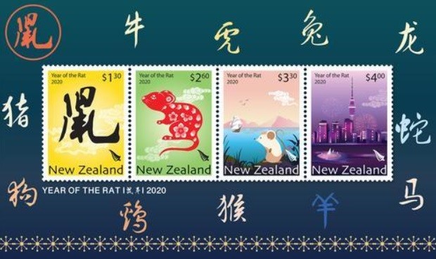 新西兰邮政4日发行2020中国鼠年生肖邮票一套4枚和包含这4枚邮票的小全张,庆祝即将到来的中国农历鼠年。 这套鼠年生肖邮票的设计者、华裔设计师李勃介绍说,鼠年邮票在设计上沿用了传统的中国书法和剪纸等艺术形式,透出浓厚的中国农历新年喜庆气氛。 多次参与生肖邮票设计的李勃说,小小邮票是方寸之间的情感传递,更是中新交流的纽带。生肖邮票已经成为新西兰中国农历新年庆祝活动不可或缺的一部分。