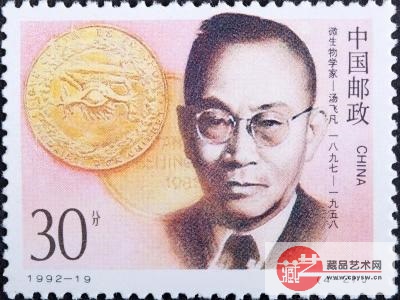 1992年11月20日,中国邮政发行的《中国现代科学家(第三组)》纪念邮票的第二枚图案为:微生物学家—汤飞凡。汤非凡是我国第一代病毒学家,也是最早研究支原体微生物的科学家之一,汤飞凡早在30年代就开始了对支原体的研究,否定了“沙眼细菌病因说”,也为“病毒病因说”打下了坚实基础。在抗日战争期间,汤飞凡在昆明重建了中央防疫处,为抗战期间解放区生产并制造了大量的血清和疫苗,为防止天花、黄热病、鼠疫等疫病做出了卓越的贡献。