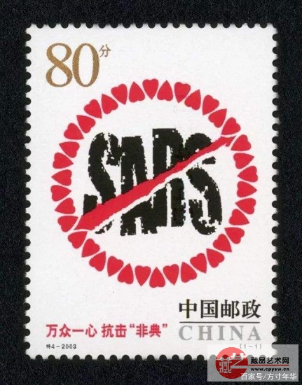 在2003年5月19日,非典疫情比较严重的时候,邮政发行量特别发行《万众一心 抗击“非典”》邮票,这套邮票面值80分,发行量1250元,总计筹款有一千万,全部捐给了抗击非典事业;当时发行非典邮票也是集邮爱好者的呼声与国家邮政局想法不谋而合,在2003年4月27日就照看紧急会议研究这套邮票,从开始研究到邮票设计再到邮票发行之用了20天的时候。