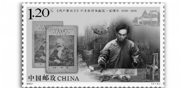 《共产党宣言》中文全译本出版百年纪念邮票。受访者供图